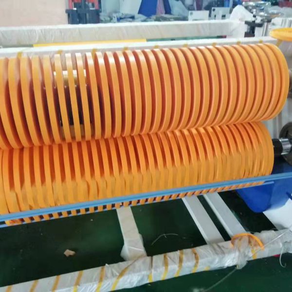 (2)鎢鋼刀,此種刀具脆性好,鋒利性好,一般用于對雙面膠等質地較軟的材料的分切。該刀具的分切精密性好,分切的過程中比較少出現(xiàn)毛刺、絲邊等現(xiàn)象。但該刀具對于比較硬的材料容易出現(xiàn)崩刀。且刀具成本相對較貴,一般廠家僅用來分切膠帶、PE膜、美紋紙等質地相對較軟的材料。